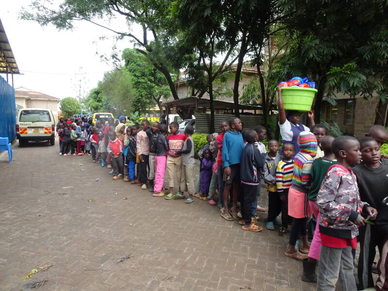 Albert en Ab waren samen in Kenia.Bij hun bezoek aan ons voedselproject in Ruiru, wordt je door de kinderen hartelijk ontvangen.